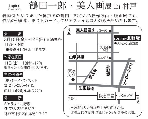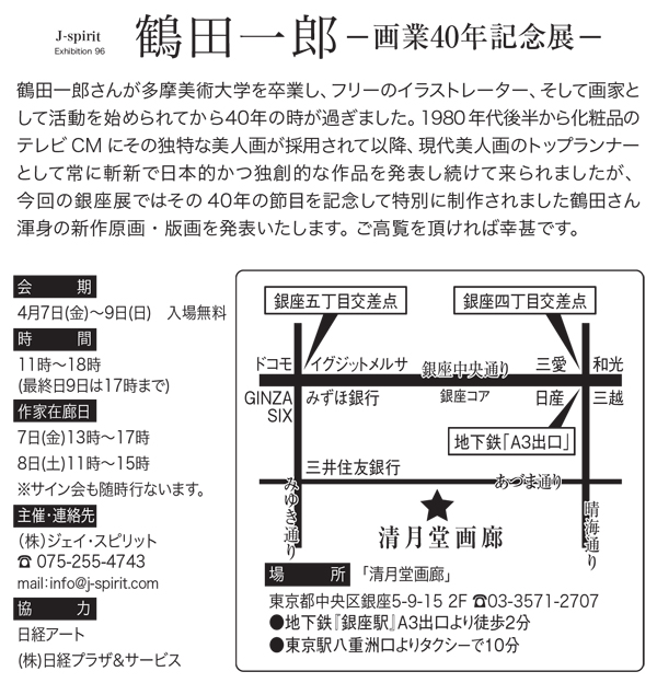 春恒例となりました京都「ちおん舎」での鶴田一郎さんの新作原画・版画展のお知らせです。
